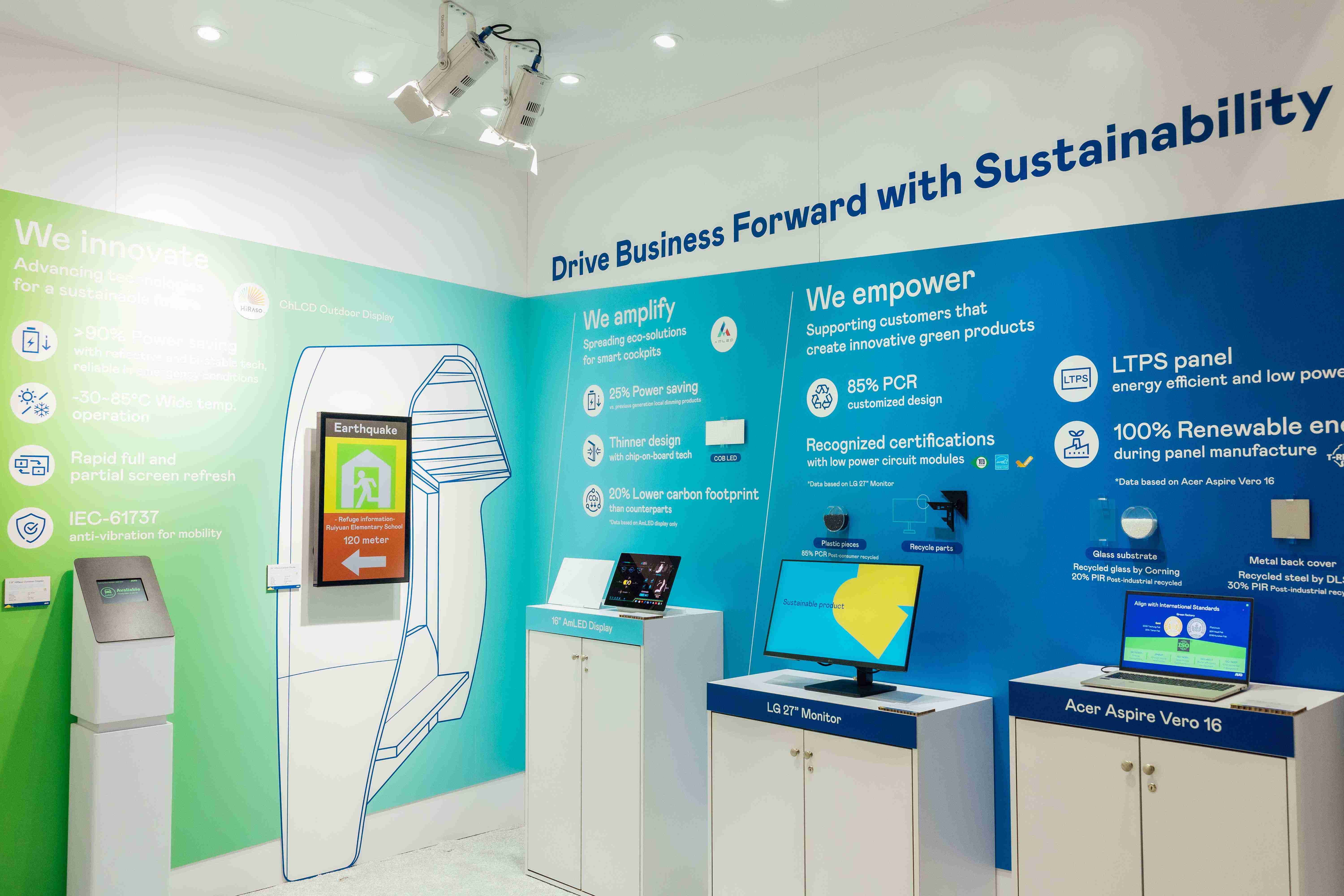尊龙z6运用创新显示技术HiRaso胆固醇液晶双稳态技术达到显示零耗能、、、、扩大节能省电的AmLED显示技术应用于车用产品、、、以再生的消费后回收(PCR)塑料及全绿电生产之面板,,,,应用于笔电及萤幕,,,,增加绿色价值。。。