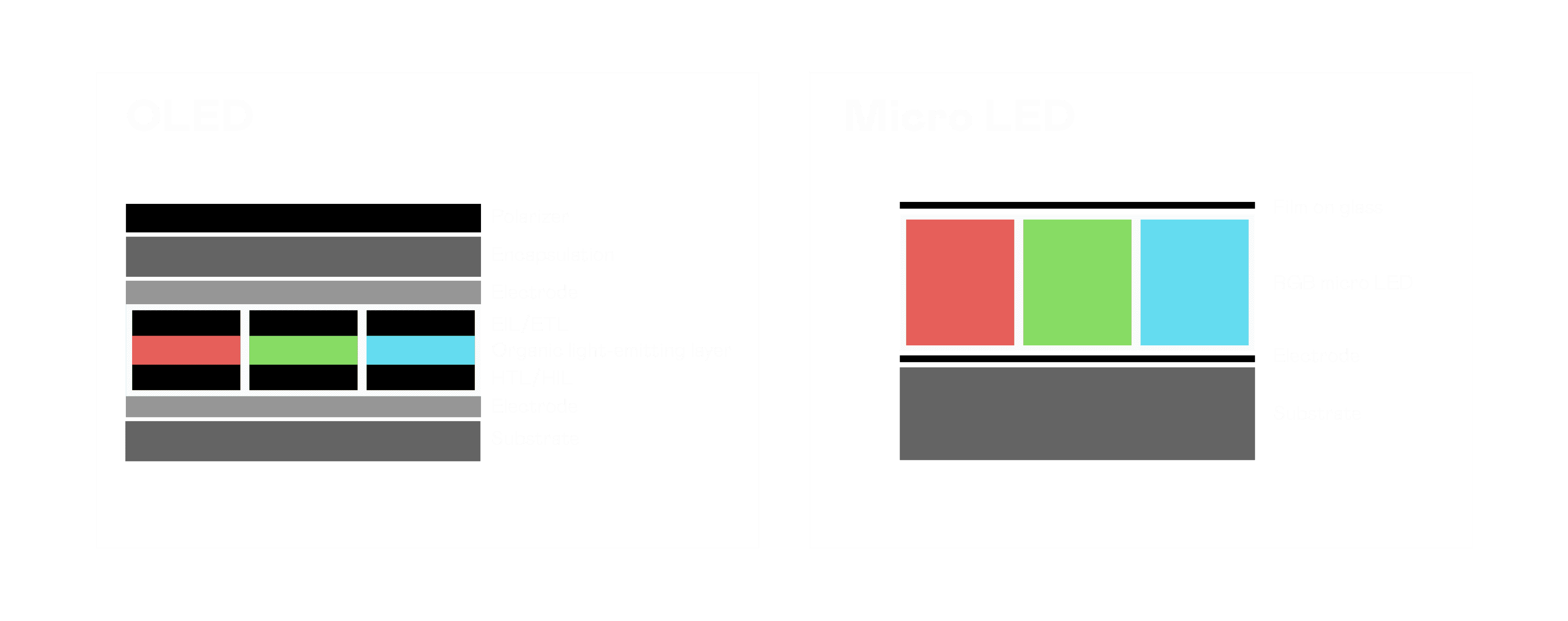 以 LED 做为显示画素,,,可让 LED 的发光效率发挥到极致,,从而让显示器具备优异的亮度表现,,,不论是在户外或室内,,均具备出众的显示效果。。。。同时,,与使用有机材料的 OLED 相比,,LED 具备更稳定、、寿命更长的特性,,,,不仅不会有画面烙印问题,,,,而且更不容易出现故障、、、坏点。。。。