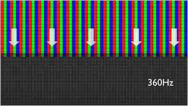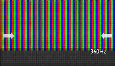 传统液晶驱动是从左到右单向进行,,,,在画面更新速度愈来越愈快的情况下,,,位于驱动线路末端的右下角区域,,,画素的闸极来不及在短时间内获得足够电压,,,,无法显示出正确的颜色资讯。。。 |